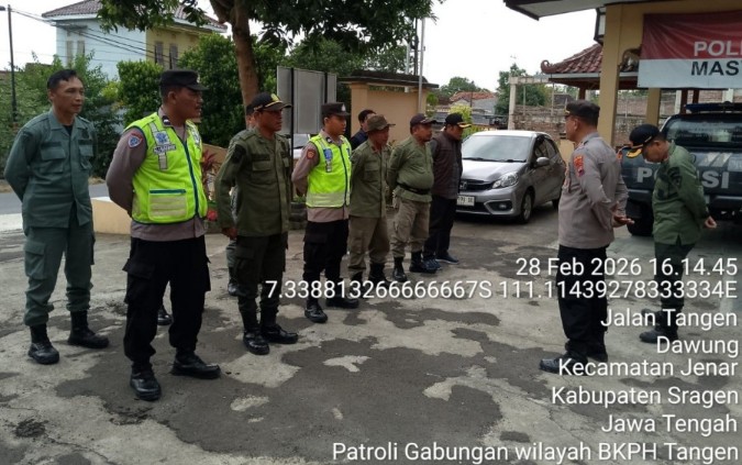 MediaBantenCyber.co.id – (MBC) Surakarta,Dalam rangka menekan tindak pidana hutan jelang lebaran terkait Ilegal Logging Perum Perhutani KPH Surakarta dan Polsek Jenar gelar patroli gabungan di kawasan hutan Kabupaten Sragen, pada Sabtu (28/02/2026). Dan kegiatan ini dilakukan sebagai langkah preventif guna menjaga stabilitas keamanan hutan dan mempererat sinergi antara Polri dengan Perum Perhutani.