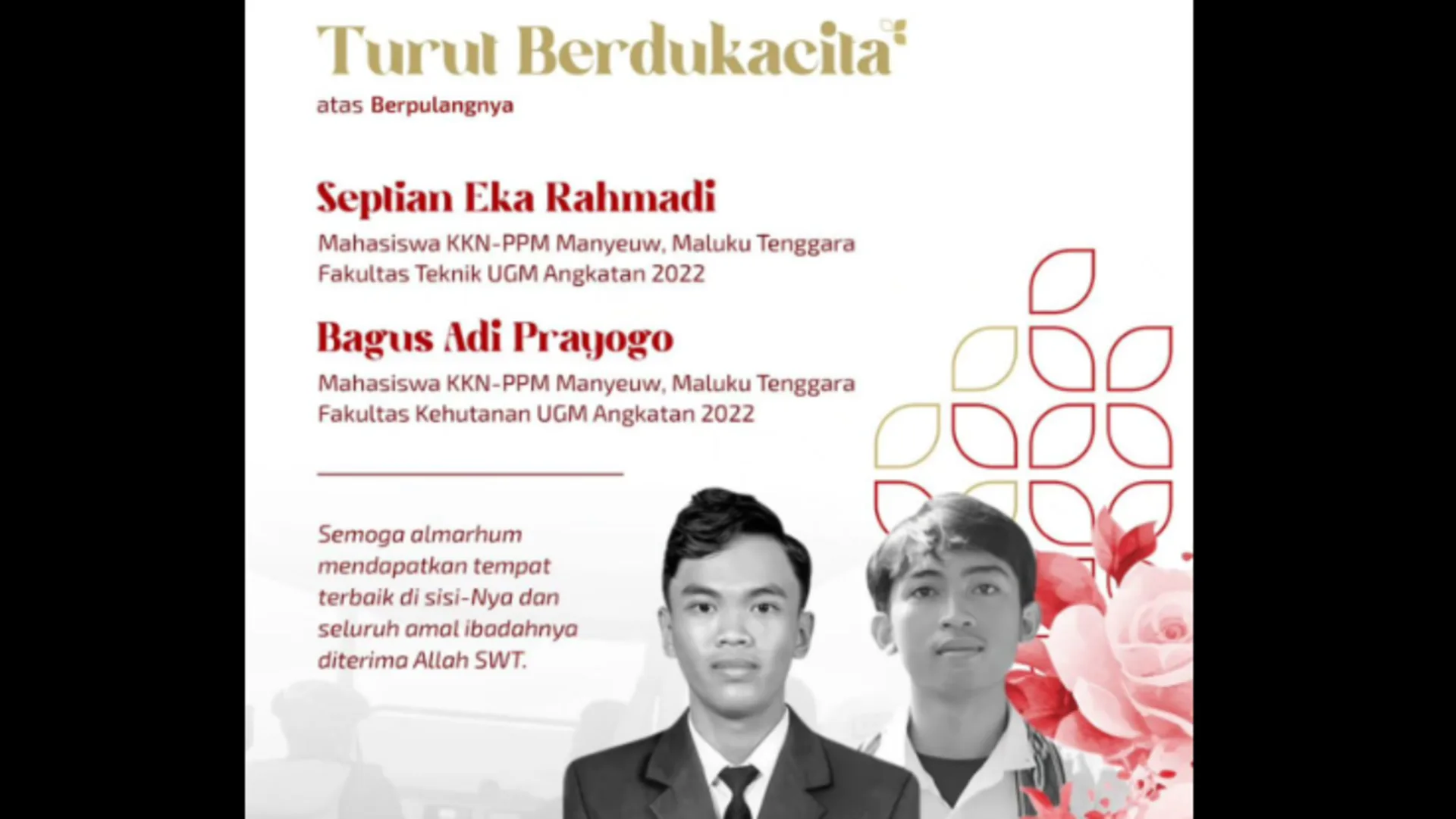 Muncul kabar adanya dua mahasiswa Universitas Gadjah Mada (UGM) yang tengah menjalankan program Kuliah Kerja Nyata (KKN) dilaporkan meninggal dunia saat menjalankan tugas di wilayah perairan Maluku Tenggara.